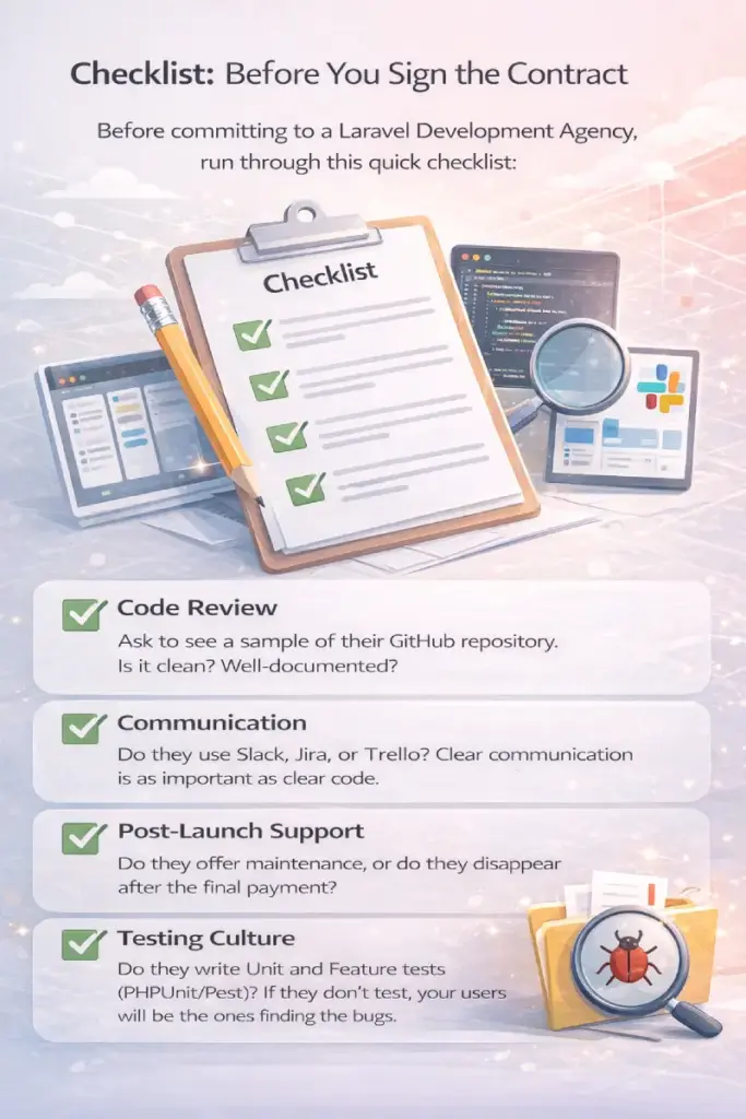 Before committing to a Laravel Development Agency, run through this quick checklist: